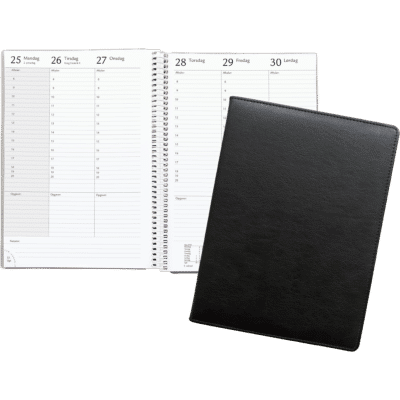 A5 ugekalender i sort kunstlæder 2026