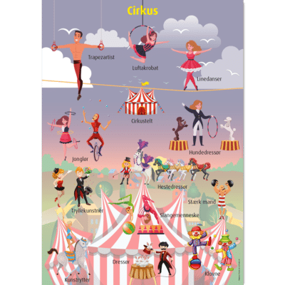 Motiverne på vores plakater er designet til at vække spørgsmål, inspirere til leg og give mulighed for små samtaler om, hvad barnet ser. Hvad laver elefanten på savannen? Hvor mange traktorer er der på marken? Hvordan ser et cirkus ud?