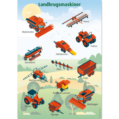 Landbrugsmaskiner – ideel til børn, der er fascineret af traktorer, mejetærskere og maskiner i arbejde. De farverige illustrationer vækker begejstring hos de små, der elsker alt med motorer og maskiner.