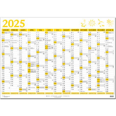 Kalenderen er praktisk at have hængende på væggen på jobbet, så du hurtigt kan danne dig et overblik over året. Her kan du skrive ferie, møder og andre aftaler ind, så du ikke kommer til at dobbeltbooke eller misser et vigtigt møde. Du kan også have kalenderen liggende i skuffen ved dit skrivebord, så du hurtigt har adgang til årets begivenheder.