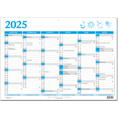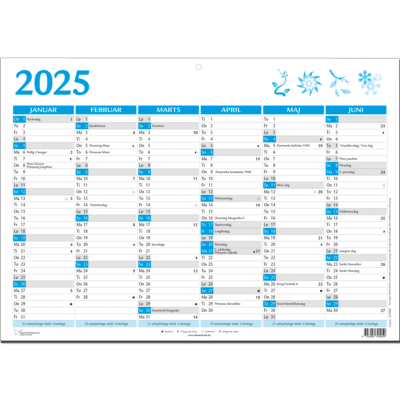Kalenderen er praktisk at have hængende på væggen på jobbet, så du hurtigt kan danne dig et overblik over året. Her kan du skrive ferie, møder og andre aftaler ind, så du ikke kommer til at dobbeltbooke eller misser et vigtigt møde. Du kan også have kalenderen liggende i skuffen ved dit skrivebord, så du hurtigt har adgang til årets begivenheder.