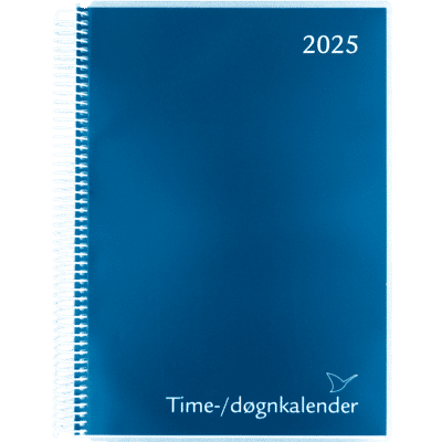 Danmarks mest anvendte kalender. Inddeling til aftaler og opgaver. Timeinddeling fra kl. 8.00-20.00. Med faner og afrivningshjørner. Forrest månedskalendere for indeværende og efterfølgende år, samt infosider med bl.a. postnumre, særtjenestenumre, forskydelige helligdage, samt oversigt med tlf. og www på færger, fly og tog.