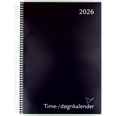 Danmarks mest anvendte kalender. Inddeling til aftaler og opgaver. Timeinddeling fra kl. 8.00-20.00. Med faner og afrivningshjørner. Forrest månedskalendere for indeværende og efterfølgende år, samt infosider med bl.a. postnumre, særtjenestenumre, forskydelige helligdage, samt oversigt med tlf. og www på færger, fly og tog.