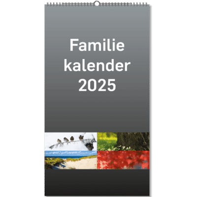 Familiekalenderen har flotte fotos på hver måned som passer til årstiden, er i størrelsen 23 x 42 cm og lige til at hænge op på væggen.