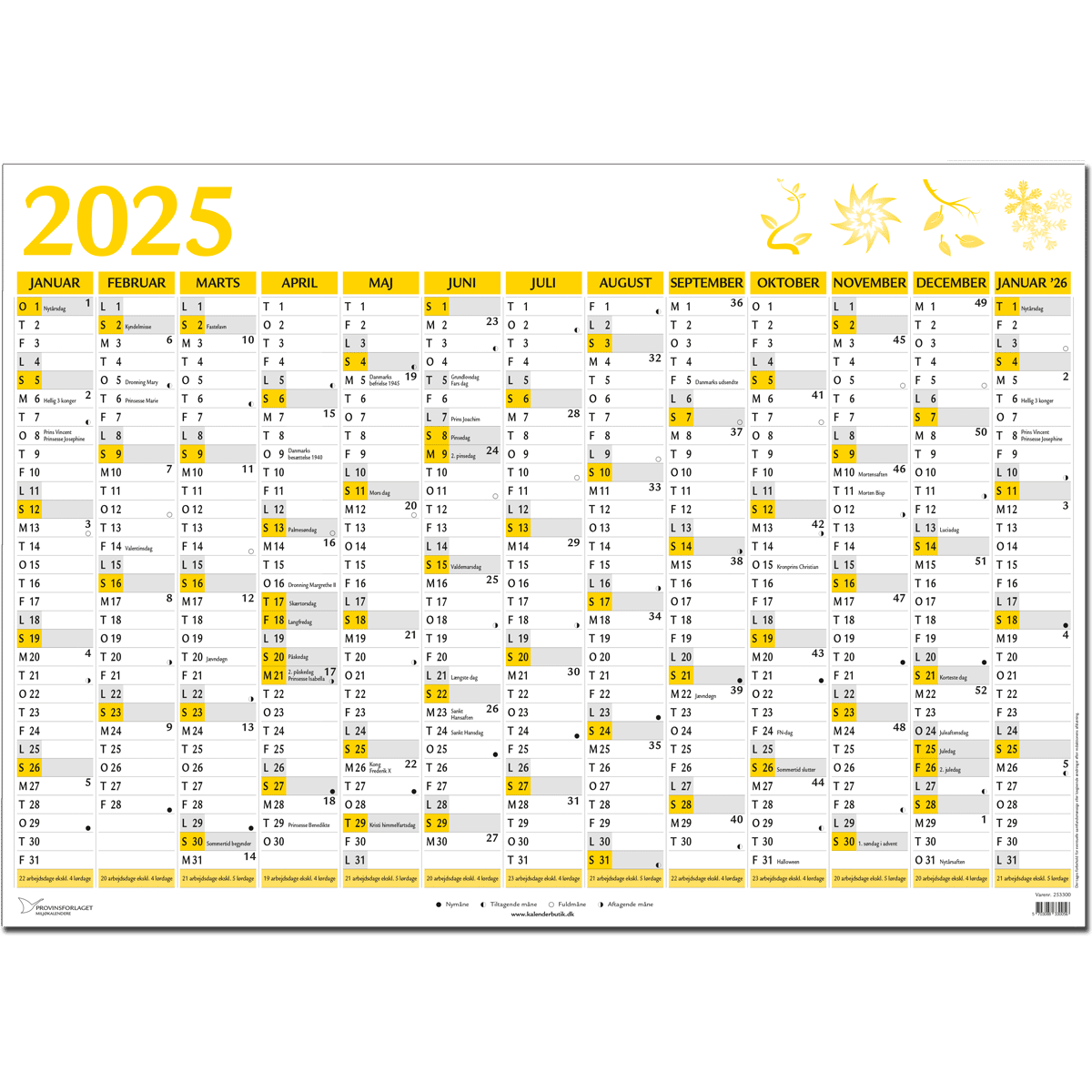13 måneders oversigt med god skriveplads, januar 2025 – januar 2026. Whiteboardudgave – det er muligt at bruge whiteboard pen, der kan fjernes med en klud. Gul. Format: 98 x 68,5 cm.