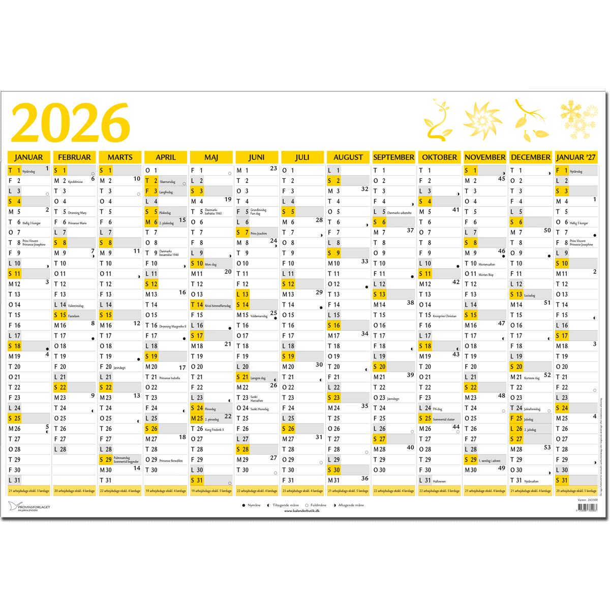 13 måneders oversigt med god skriveplads. Det er muligt at bruge whiteboard pen, der kan fjernes med en klud.