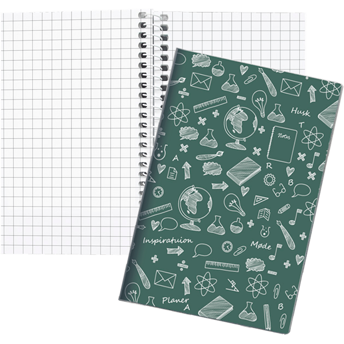 Kvadreret blok i holdbart plastomslag. 50 kvadrerede sider. Man kan med fordel tilkøbe løse blokke, der kan indsættes i omslaget efter behov. Format: 9,75 x 14,1 cm