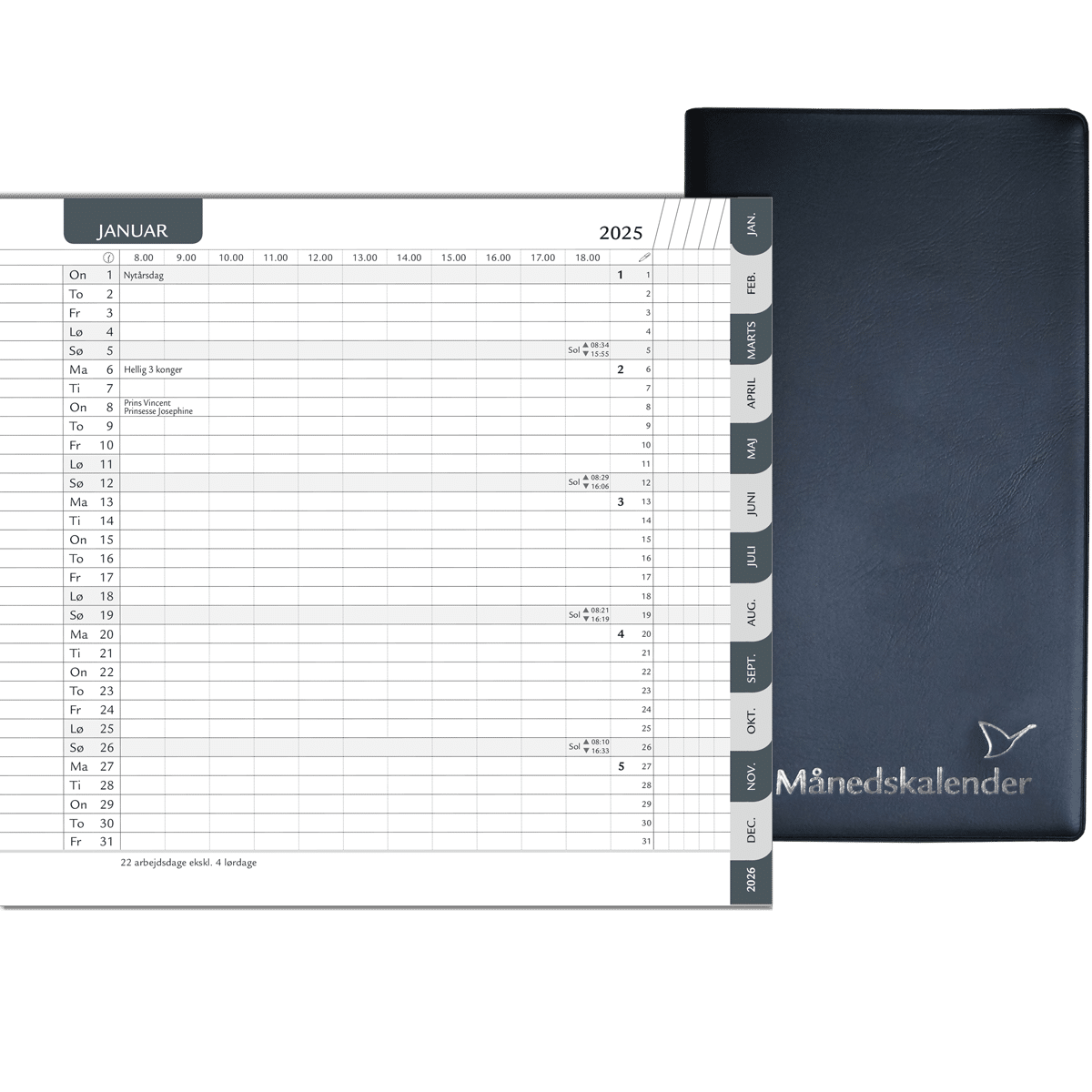 En månedskalender er for dig, der gerne vil have lidt mere overblik over dine aftaler og aktiviteter. Skriv dine aftaler ned i kalenderen så du både undgår at dobbeltbooke dig selv til en aftale eller at du misser en vigtig aftale.