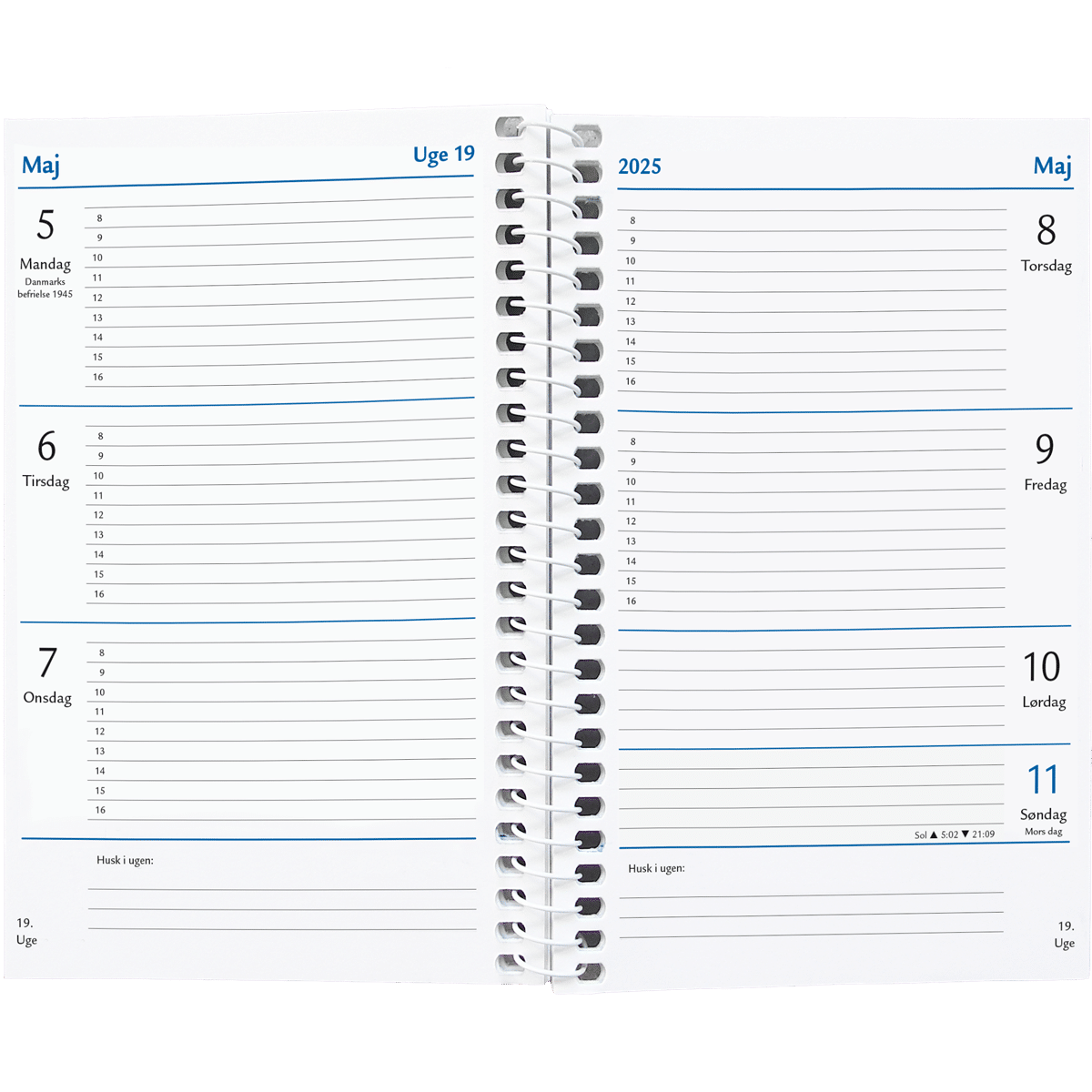 Mini spiral ugekalender 1 uge pr. opslag. Format: 8,5 x 13,5 cm.