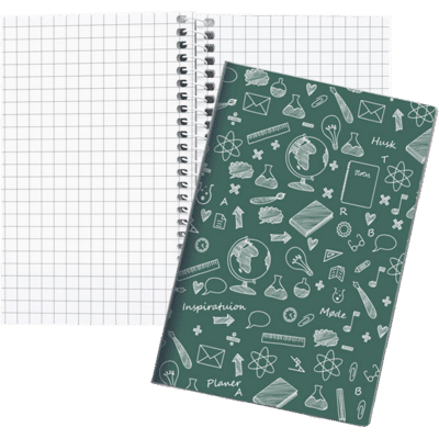 Notesbogen her består af 232 paginerede sider, hvor der på venstre side er diskrete prikker, mens der på højre side er linjer. På de første sider kan du bl.a. finde en indholdsoversigt samt udfylde, hvem bogen tilhører. Der er også en side til at notere telefonnumre og mailadresser. Format: 15,5 x 21,5 cm. Sølvpræg “Notebook”.