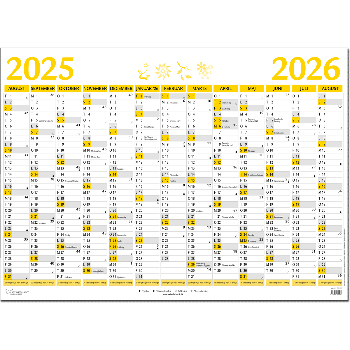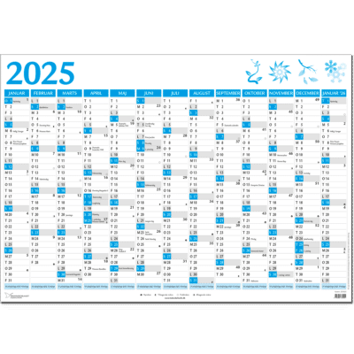 13 måneders semesterkalender i whiteboard, det er muligt at bruge whiteboard pen, der kan fjernes med en klud.